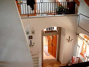 Die VorhalleÜber diesen Raum betritt man das Haus. Der Stiegenaufgang führt ins Obergeschoß, ein mächtiger Kamin bildet das Herzstück der Halle. |