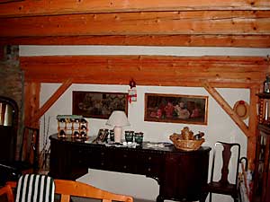 Im Steinhaus befindet sich auch der große offene Kamin. Hier werden die Winterabende wohlig warm, wir sitzen gern beim knisternden Feuer. Der große Christbaum schmückt den Raum zur Weihnachtszeit. |