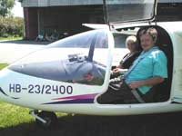 Überraschungsessen für die Hungrigen. Die mutige Copilotin mit Fluglehrer im Motorsegler in Dobersberg